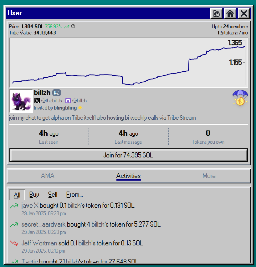 Its most expensive token, belonging to founder Billzh, is priced at 1.304SOL
