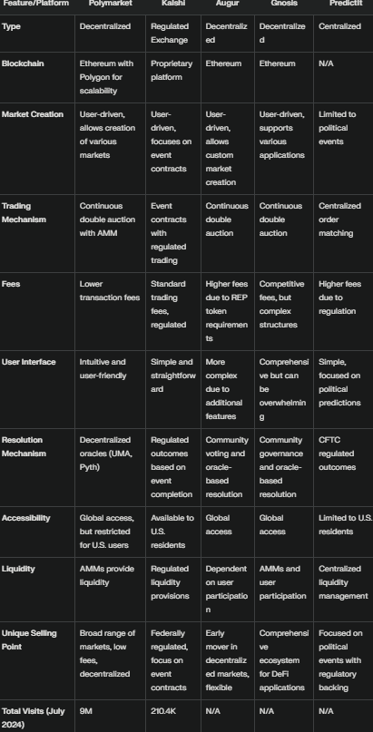 How is Polymarket better than Kalshi, Augur, Gnosis, and PredictIt?