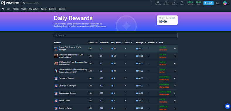 Polymarket is a platform where people can bet on the outcome of real-world events like Politics, Cryptocurrency, Sports, Science, Pop Culture Business using cryptocurrency. It runs on the Ethereum blockchain.